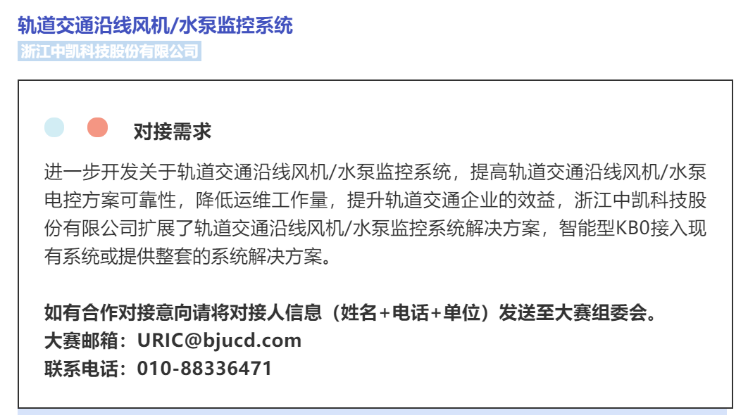 浙江中凱科技股份有限公司在報名參賽后,根據(jù)多年來公司產(chǎn)品在城市軌道交通的應(yīng)用案例,結(jié)合國家“十四五”軌道交通發(fā)展需求,成立項目小組,根據(jù)大賽命題,迅速明確參賽題目:《軌道交通沿線風(fēng)機(jī)/水泵監(jiān)控系統(tǒng)》。該參賽項目從系統(tǒng)應(yīng)用的角度,充分展示了中凱智能型KB0在城市軌道交通沿線風(fēng)機(jī)/水泵監(jiān)控系統(tǒng)給城市軌道交通智慧運(yùn)維帶來的提升;從系統(tǒng)構(gòu)成的角度,對比了現(xiàn)有的構(gòu)成方案,中凱智能型KB0體現(xiàn)出了諸多的應(yīng)用優(yōu)勢。